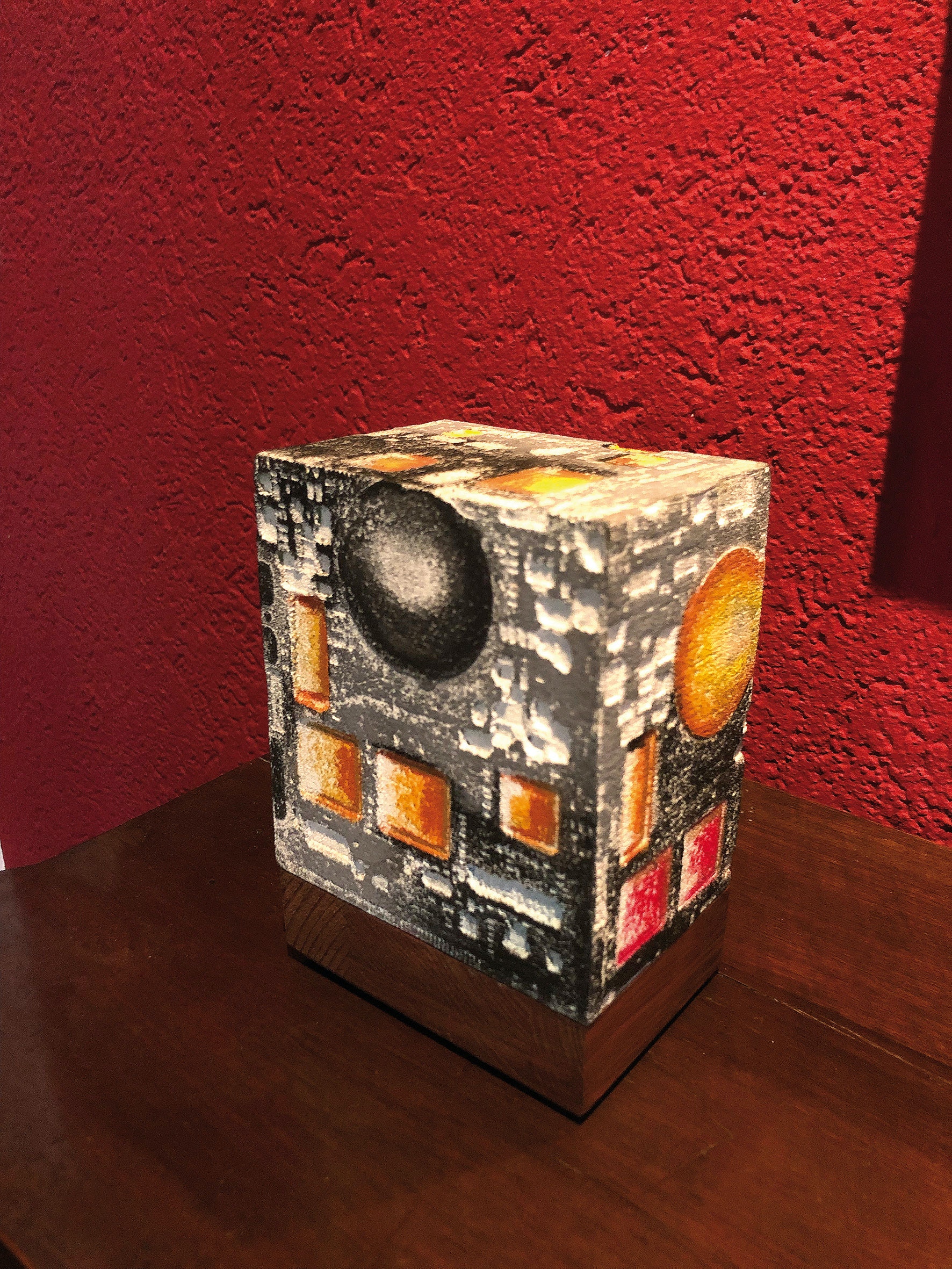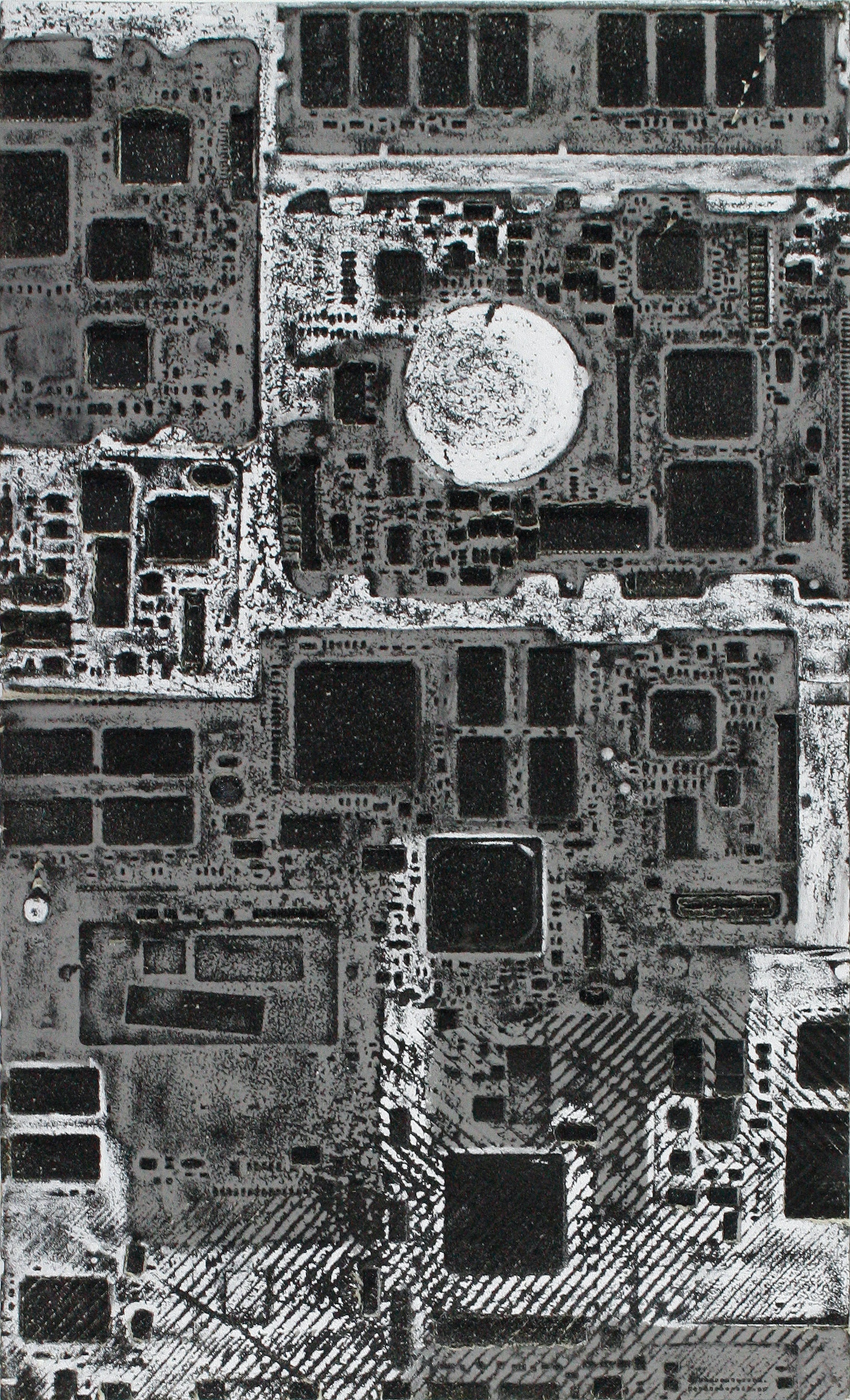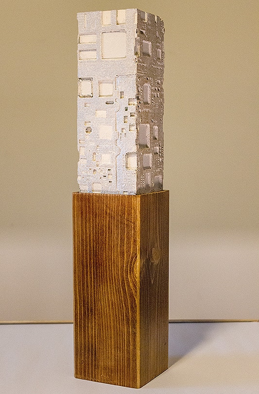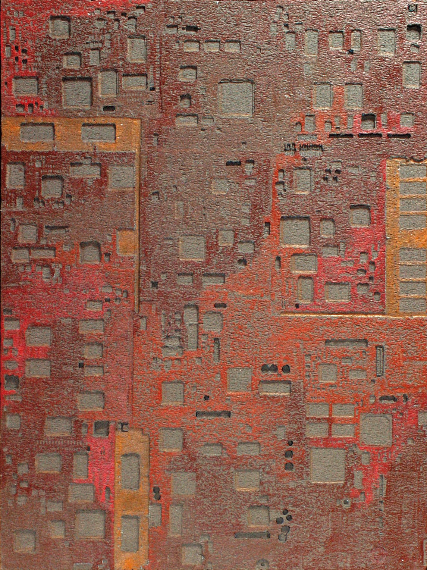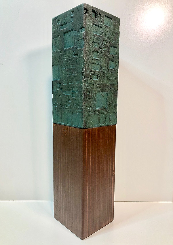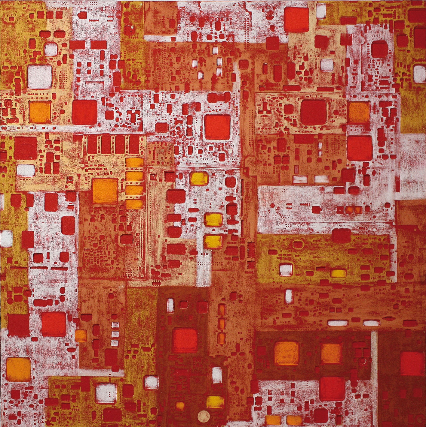 La curiosità per la tecnologia, l’elettronica e la grafica convogliano le forme e i segni, che albergano nella sua mente, verso la sperimentazione plastica con diversi materiali.